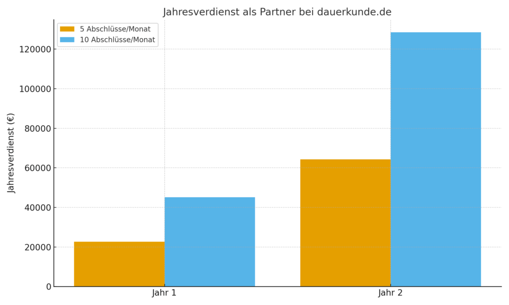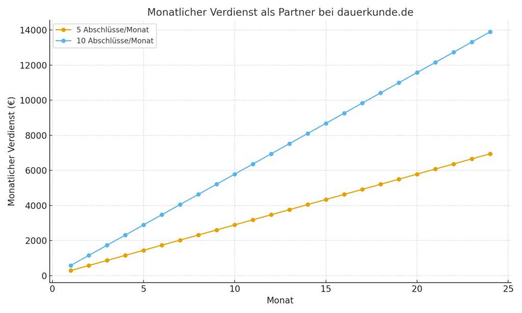 • 10 neue Abschlüsse pro Monat → nach 24 Monaten über 13.000 € Provision monatlich